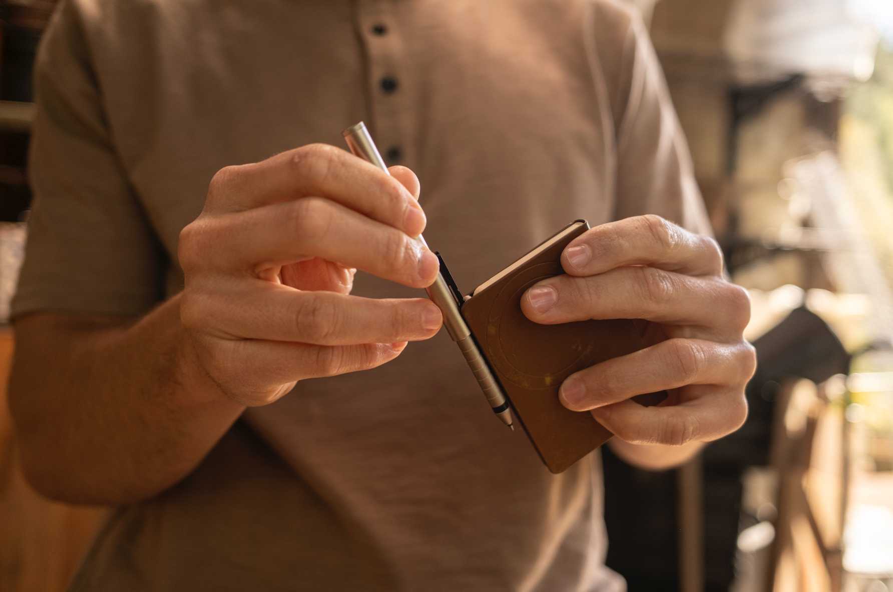 Need pen and paper within reach? Note's compact design has both right by your side (or in your pocket).