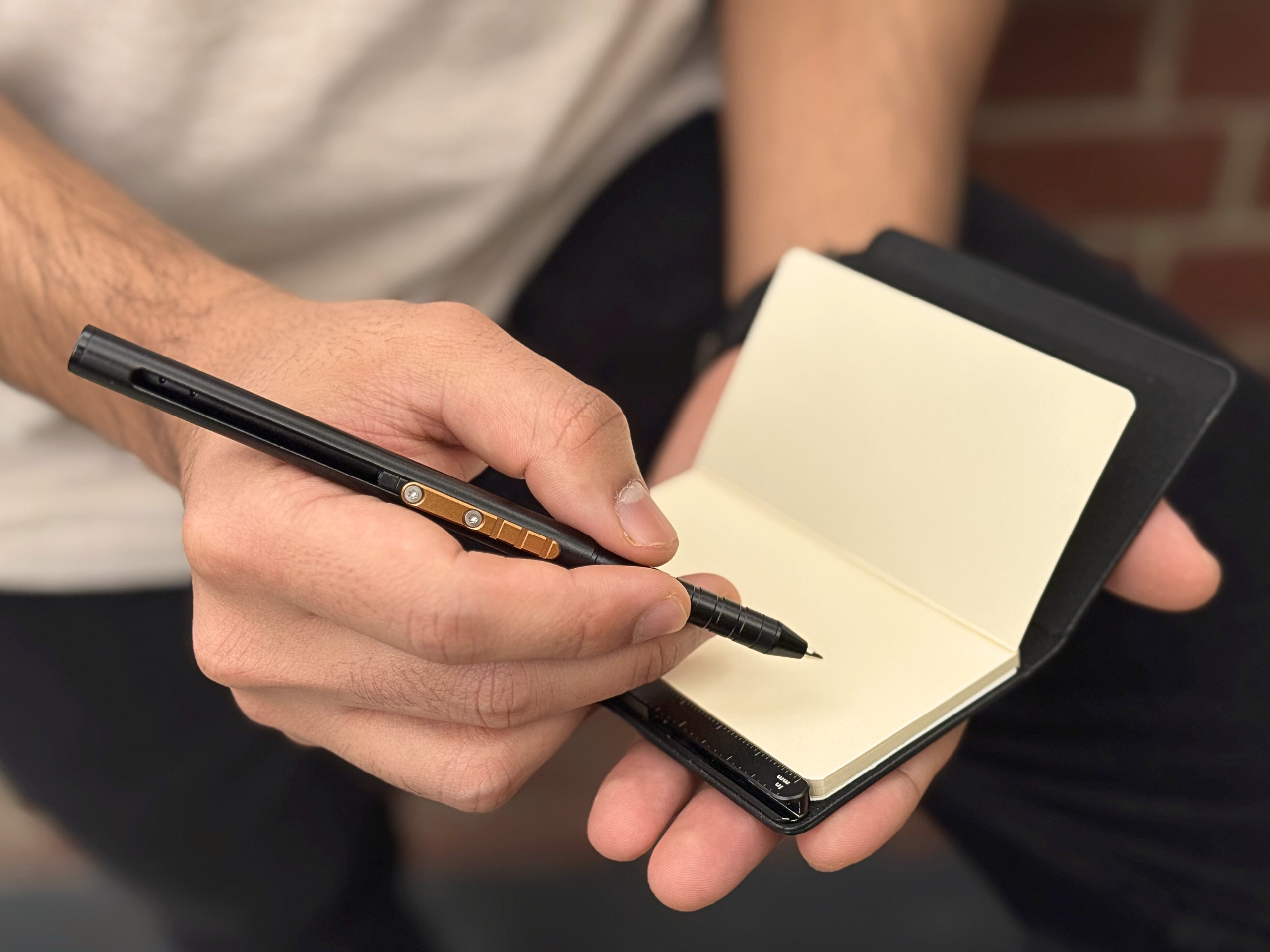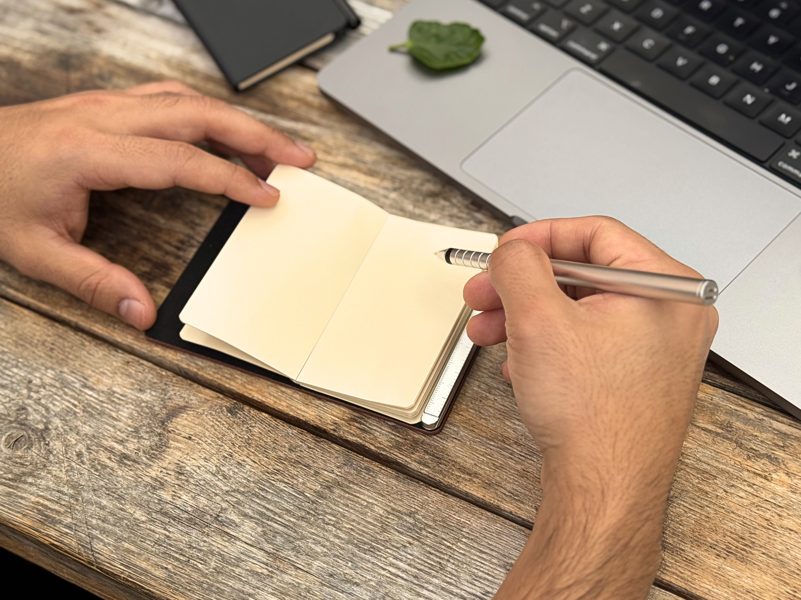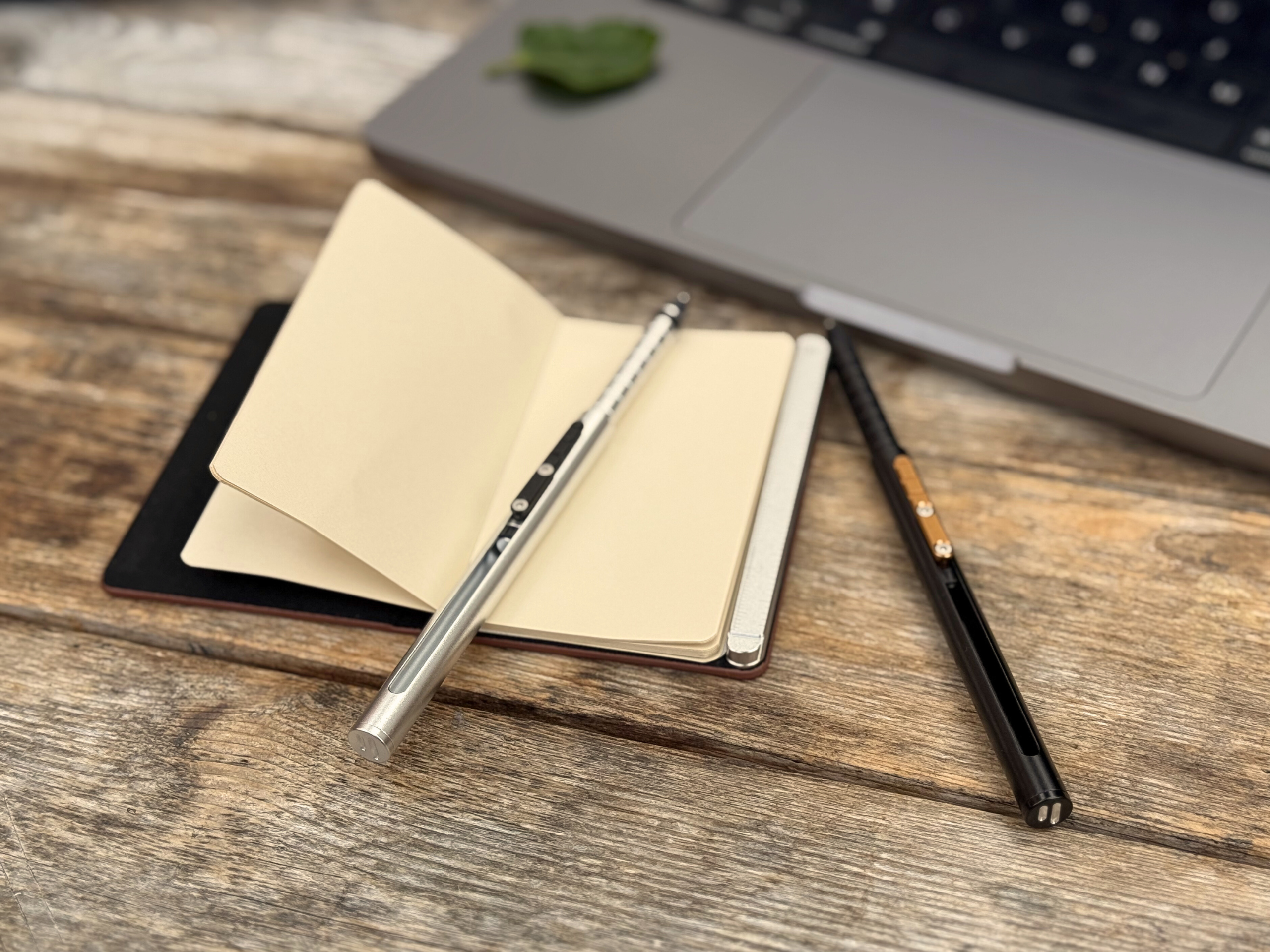 The integrated pen slot and external leather will develop a distinguished patina over time, reflecting your journey.