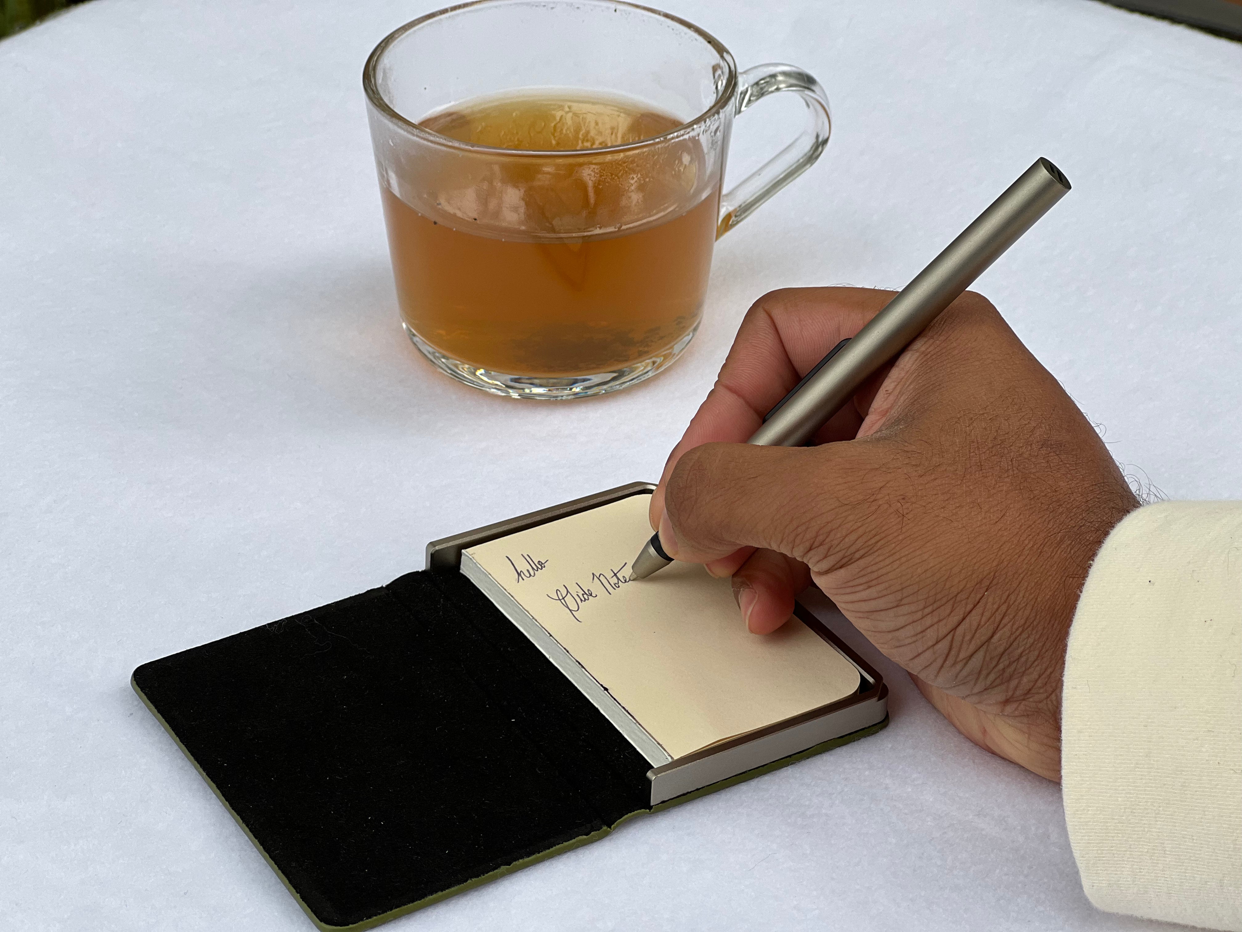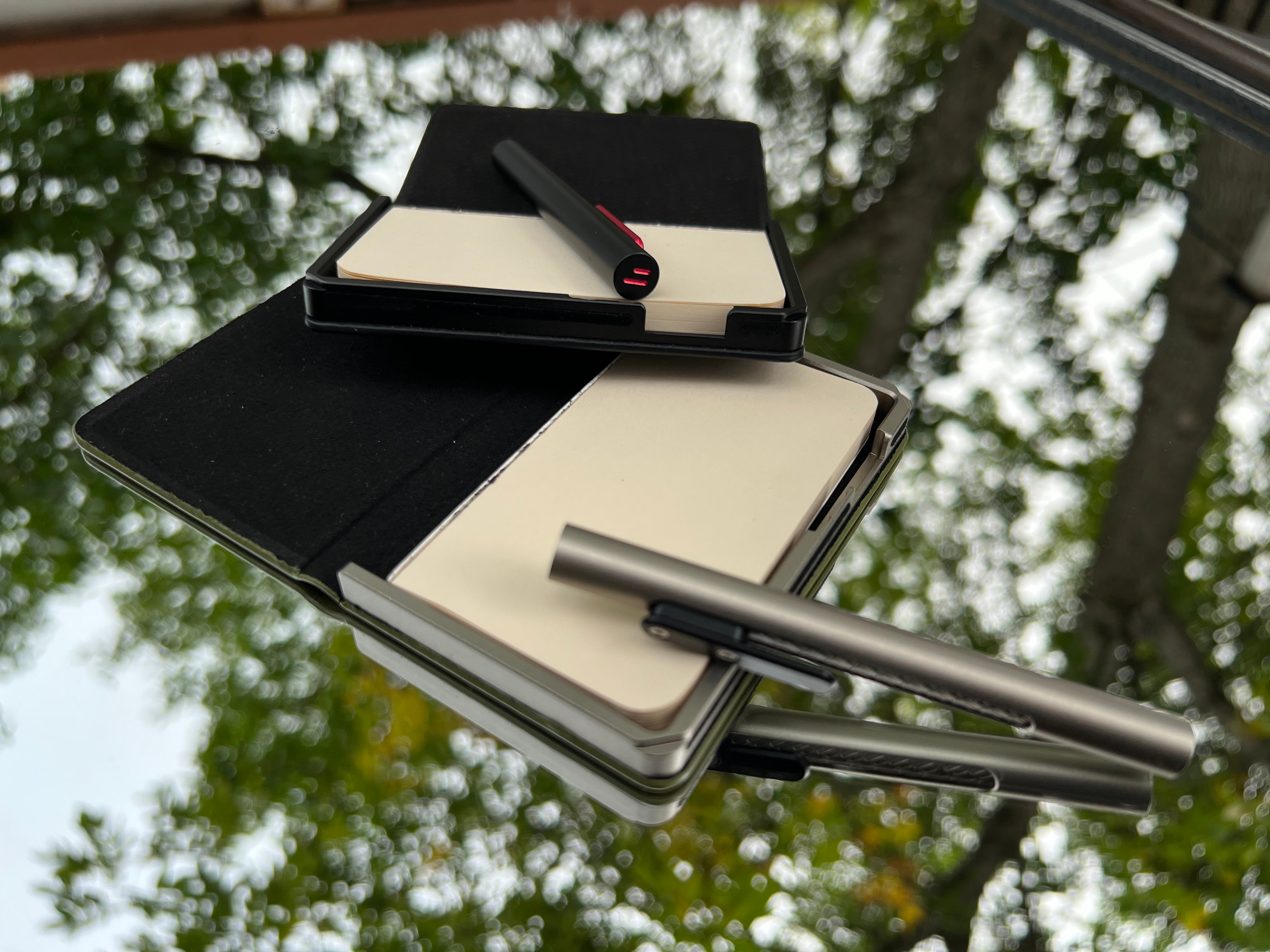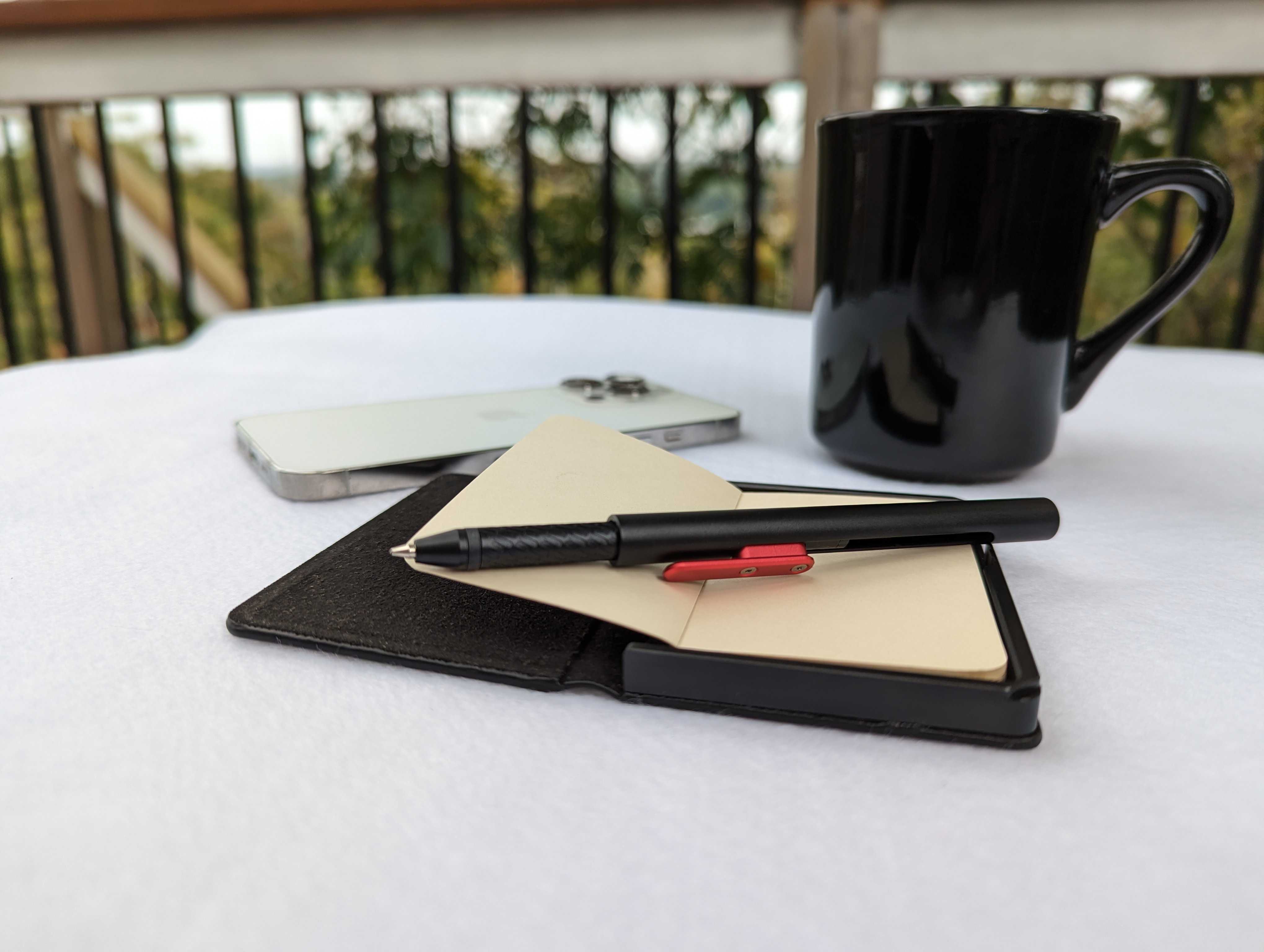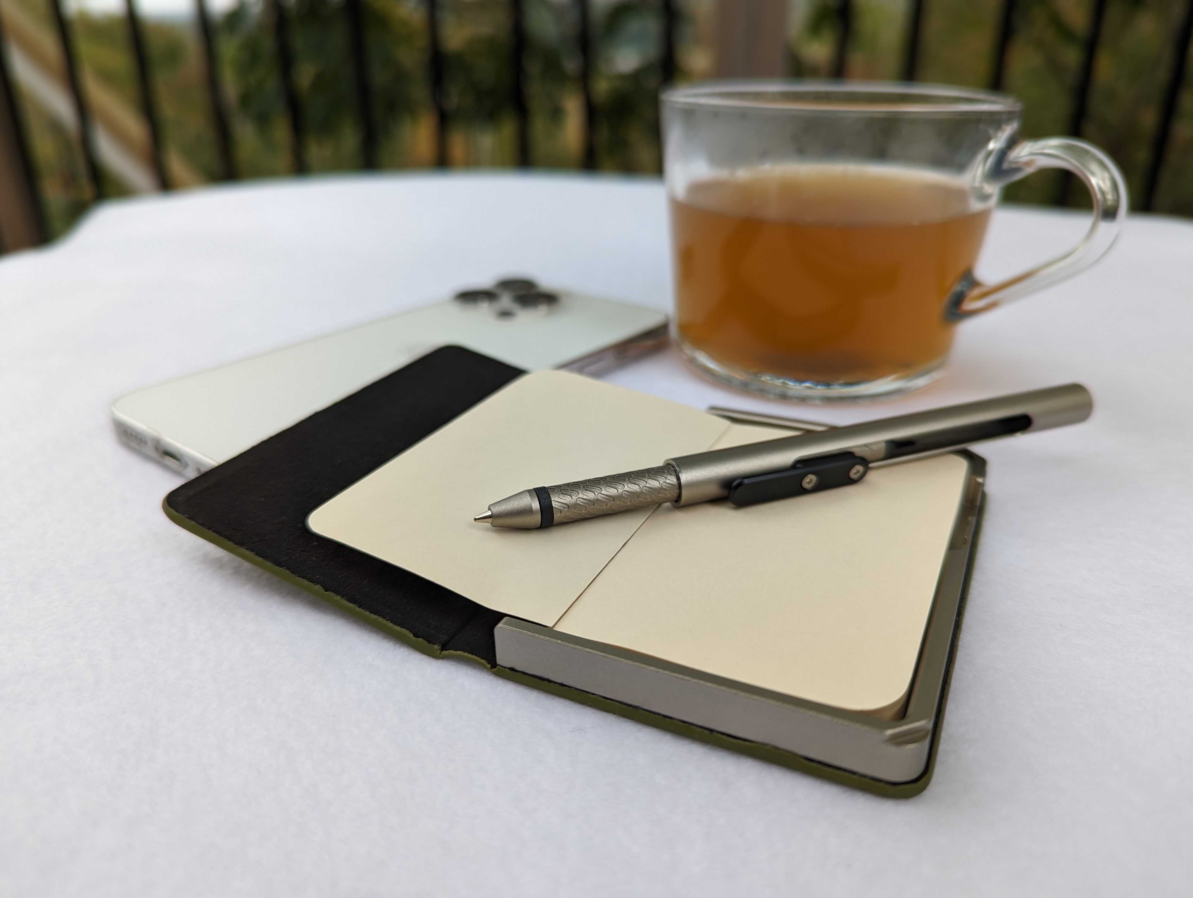 The integrated pen slot and external leather will develop a distinguished patina over time, reflecting your journey