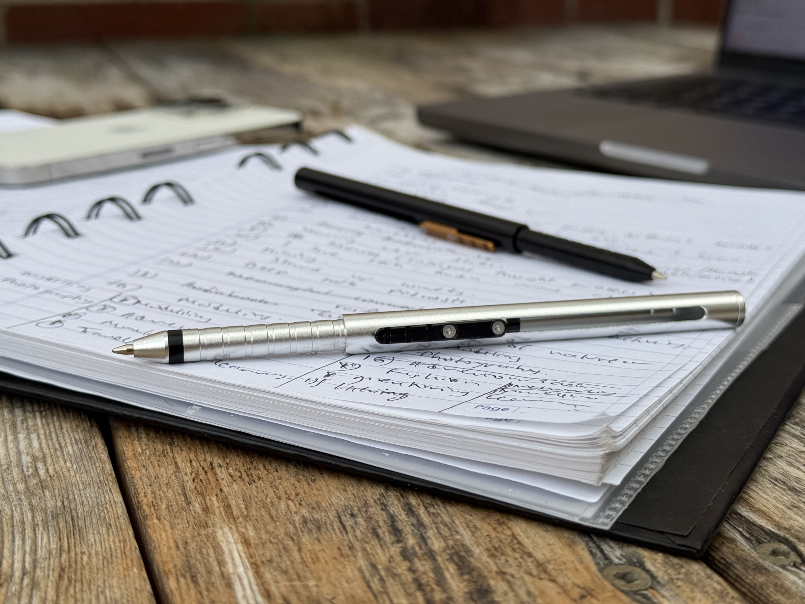 The integrated pen slot and external leather will develop a distinguished patina over time, reflecting your journey.